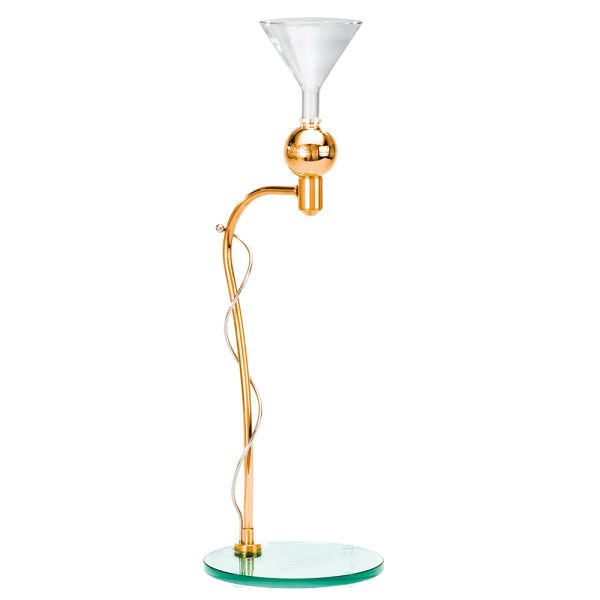 Gerätekonstruktion: Zentripetale Wasserführung, Dimensionierung nach sakraler Geometrie und Harmonik, Einsatz von 7–10 verschiedenen Energiekartuschen und Edelsteinen.